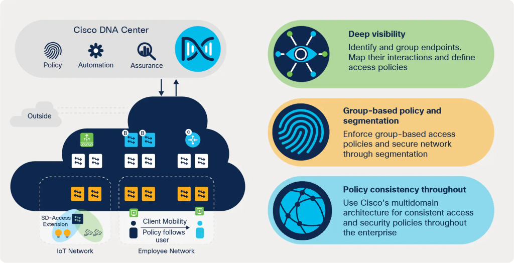 دسترسی مبتنی بر نرم افزار یا Software-Define Access که به اختصار SD-Access نامیده میشود حاصل تکاملِ طراحیهای قدیمی Campus LAN به شبکههایی که بطور مستقیم تصمیمات سازمان را اجرا میکنند است. SD-Access سیسکو مجهز به یک پکیج از برنامههای کاربردی است که به عنوان بخشی از نرمافزار Cisco Center DNA برای طراحی، آمادهسازی، اعمال Policy و تسهیل در ایجاد… بیشتر بدانید